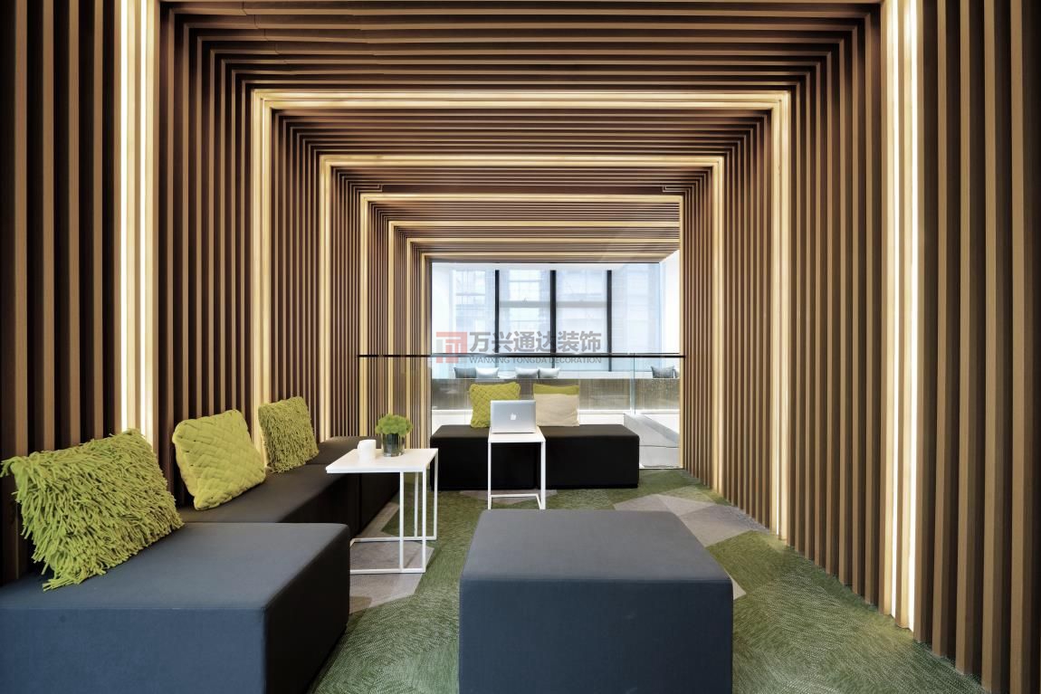 辦公室裝修案例:巧妙的將辦公裝修與趣味融合到一起,設(shè)(shè)計(jì)最大的初衷是:“ 讓人在辦公環(huán)(huán)境里面很愜意地體會(huì)自然 ”。以此來(lái)創(chuàng)(chuàng)造一個(gè)生態(tài)(tài)型的,能跟自然有一定互動(dòng)的園區(qū)(qū),由生態(tài)(tài)性來(lái)創(chuàng)(chuàng)造部分的微氣候。這是一個(gè)彰顯活力的地方,是一個(gè)充滿(mǎn)樂(lè)趣辦室公設(shè)(shè)計(jì)裝修風(fēng)(fēng)格。